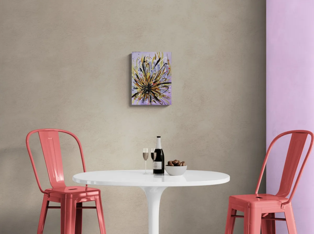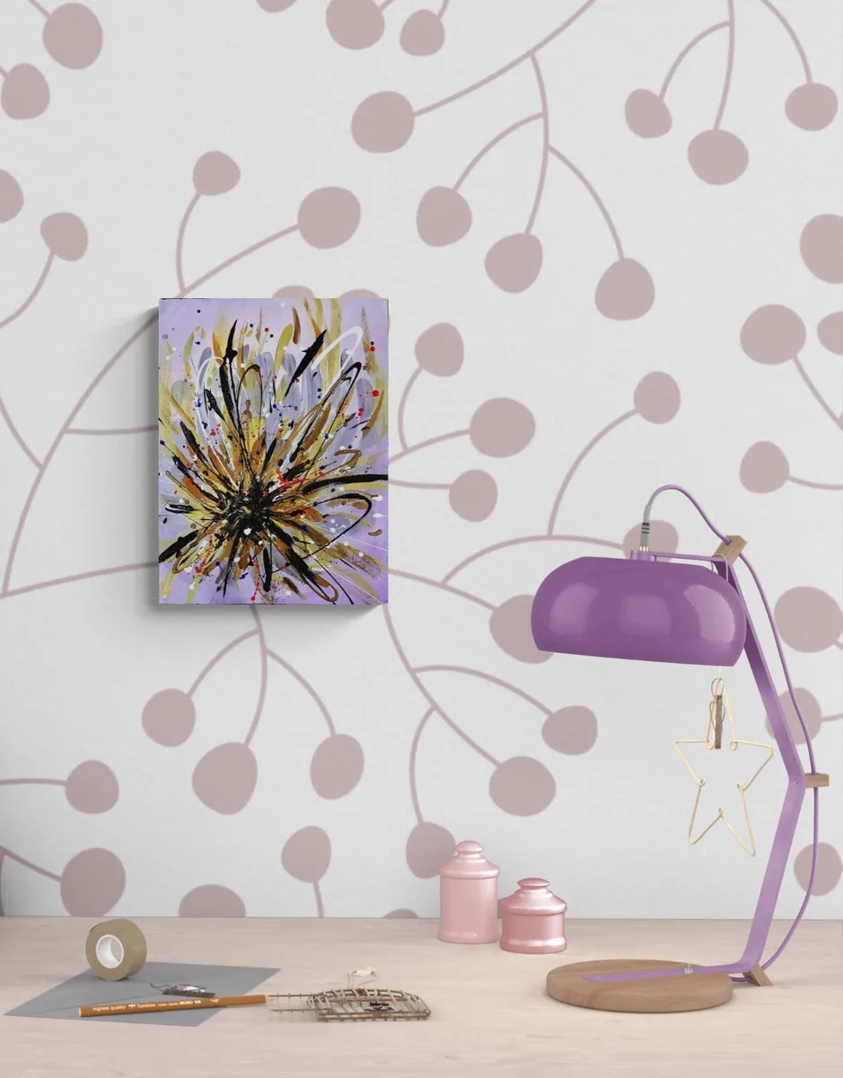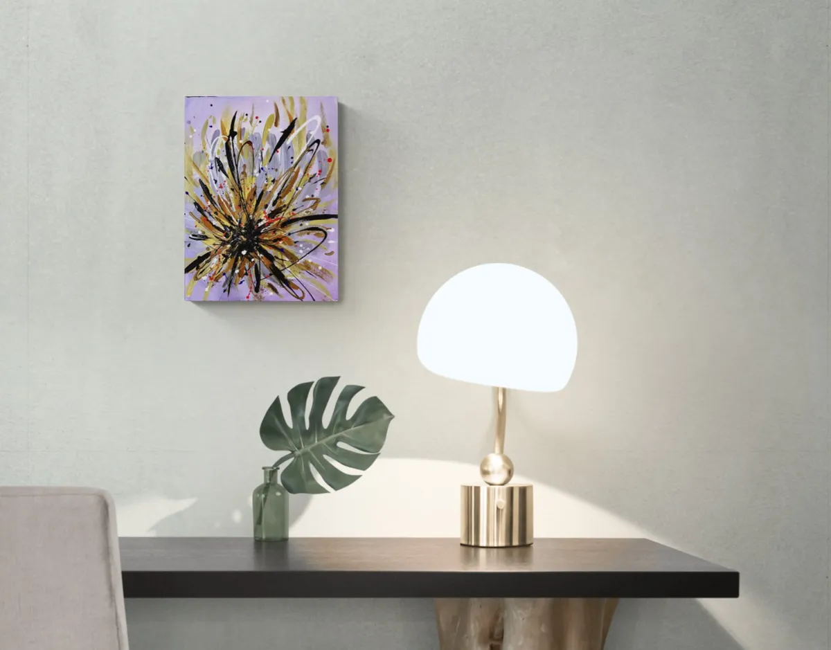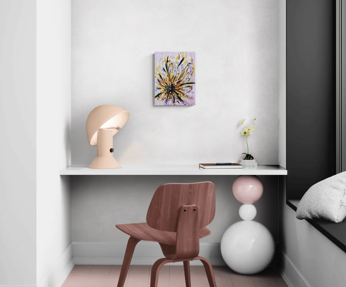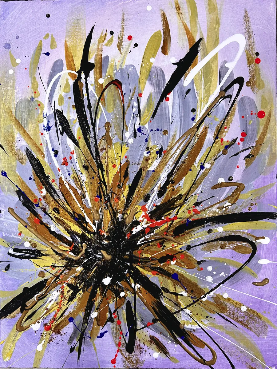 Fantastic abstract flower looks like a spider. Mixed media on a canvas wooden panel.