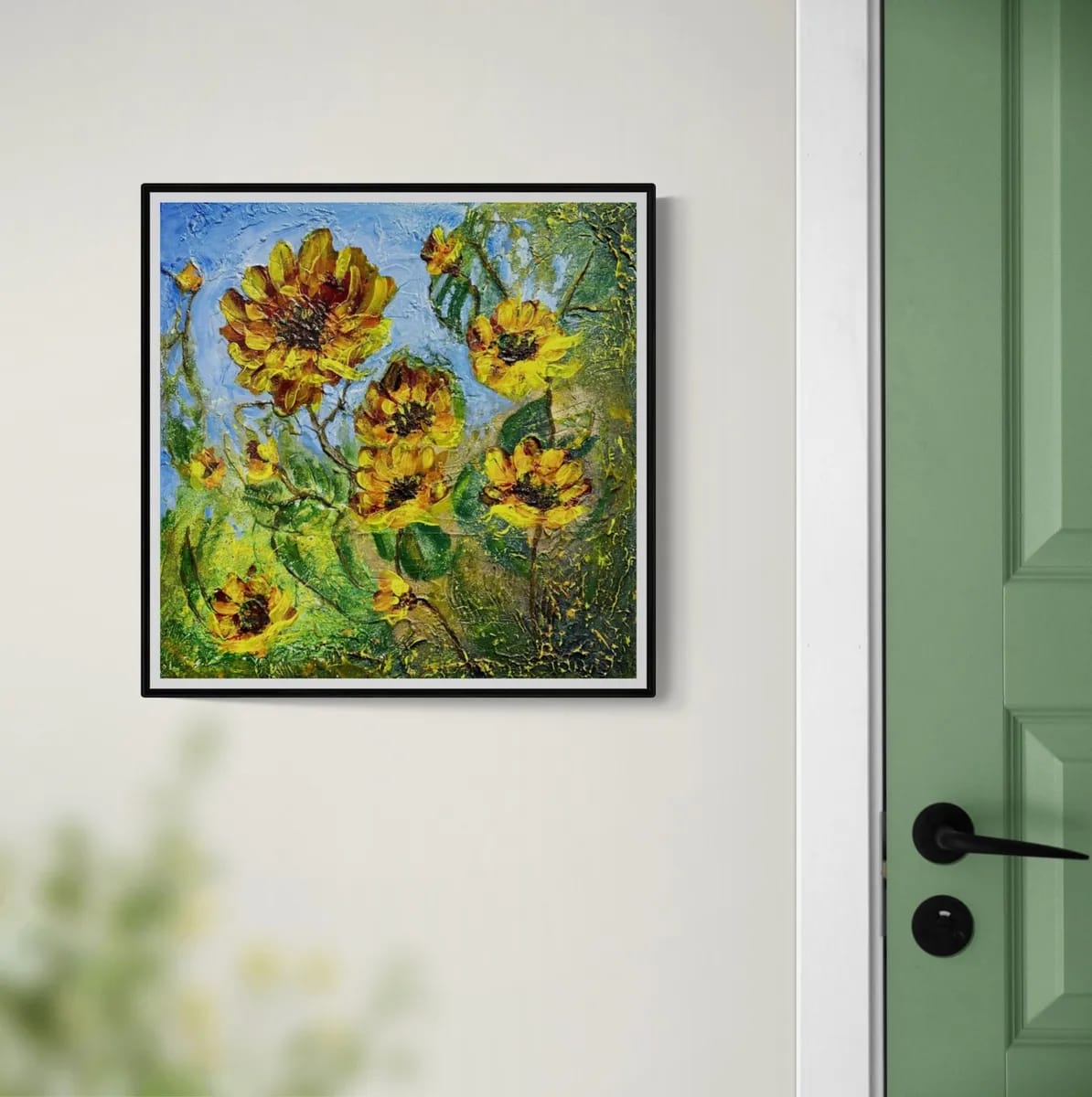 Textured painting - some of fantastic yellow flowers reflecting little bit of Sun.