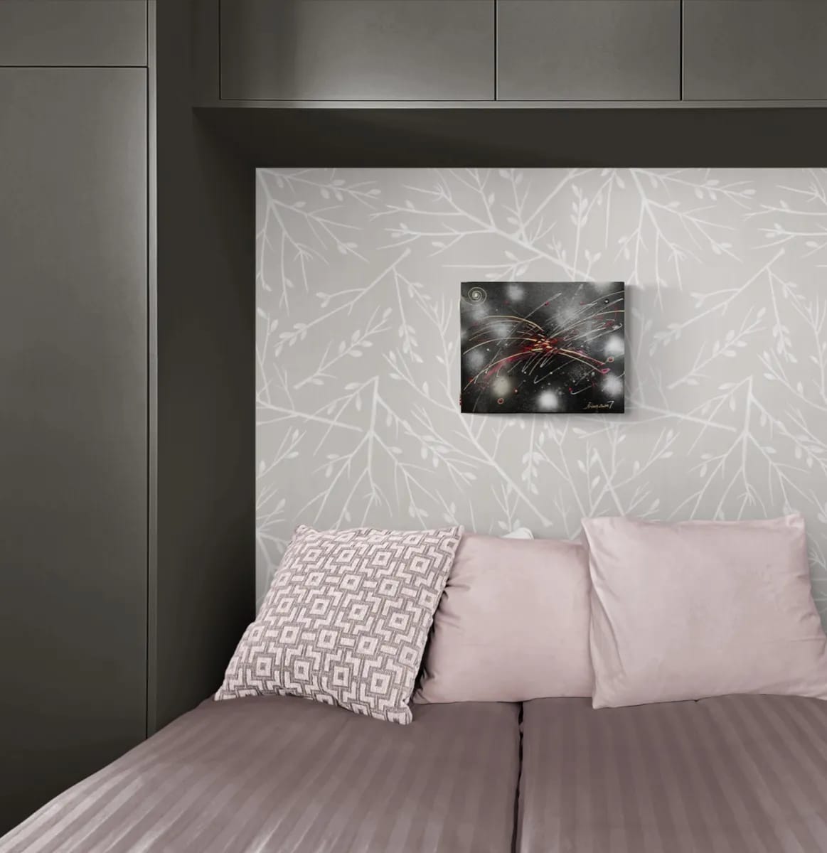 Mixed media abstract artwork.