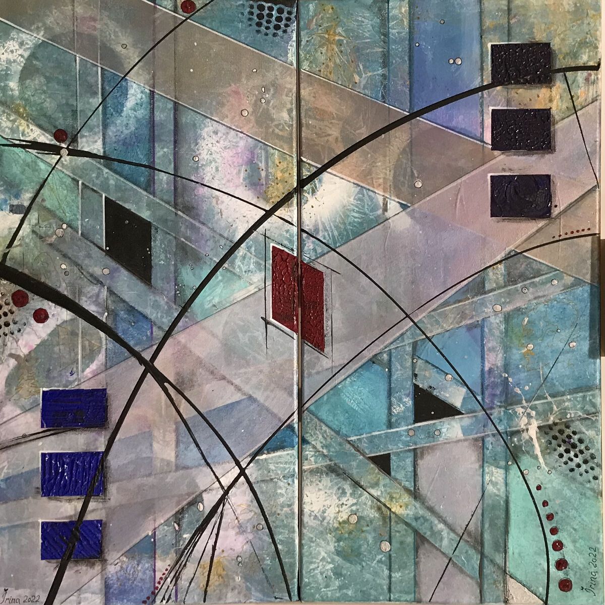 Daily Commute. Diptych. Mixed Media on Canvases.