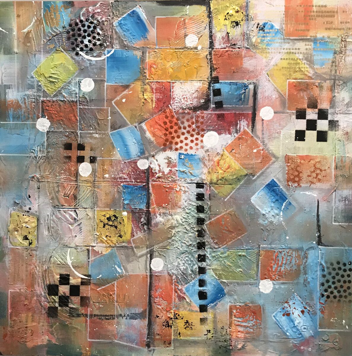 This colourful and fun memory of the famous Cirque du Soleil. Unframed Mixed Media on a MDF Board