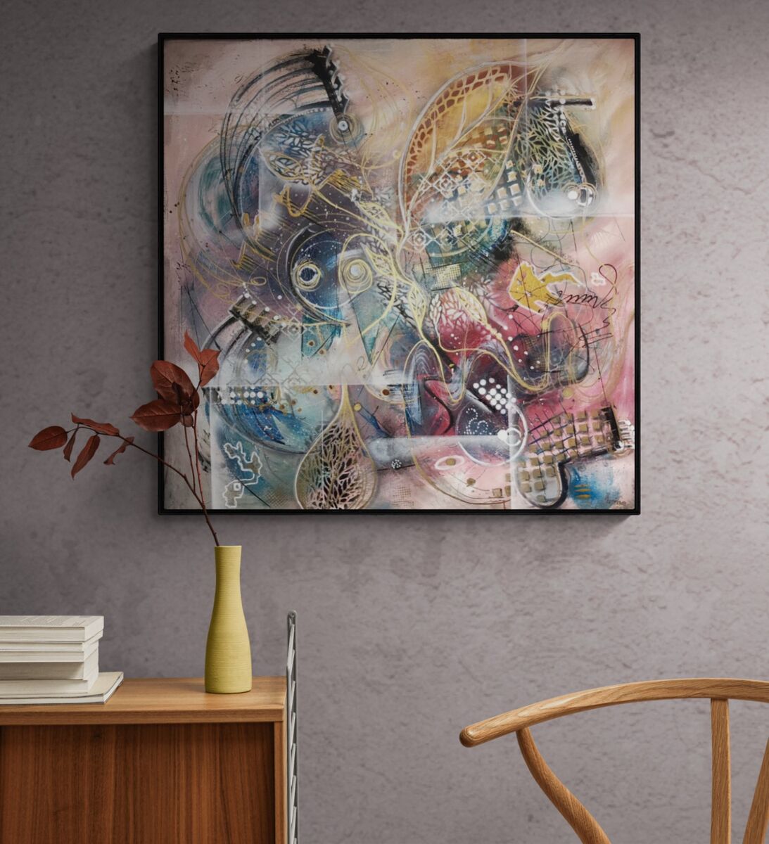 This colourful and fun memory of the famous Cirque du Soleil. Unframed Mixed Media on a MDF Board