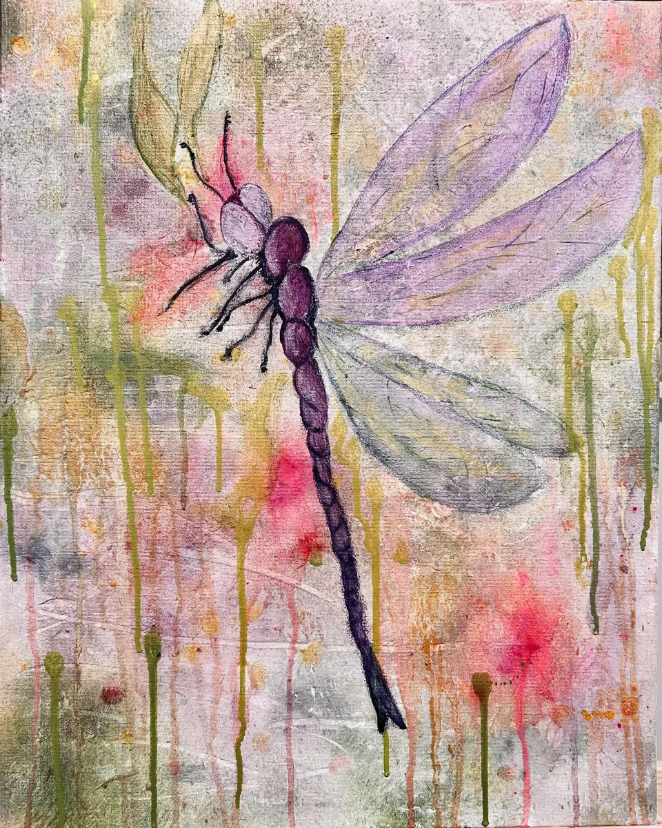 Abstract image of a Dragonfly in a colourful background. Just image the blooming garden, soothing music and calm summer day.
