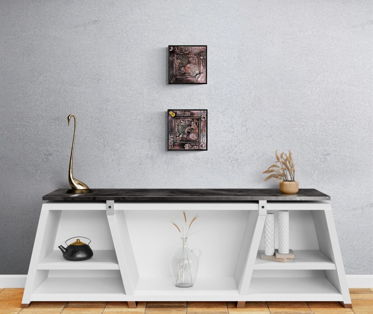 Diptych in a frames with metallic effect representing most important things in our life - Love and Home.