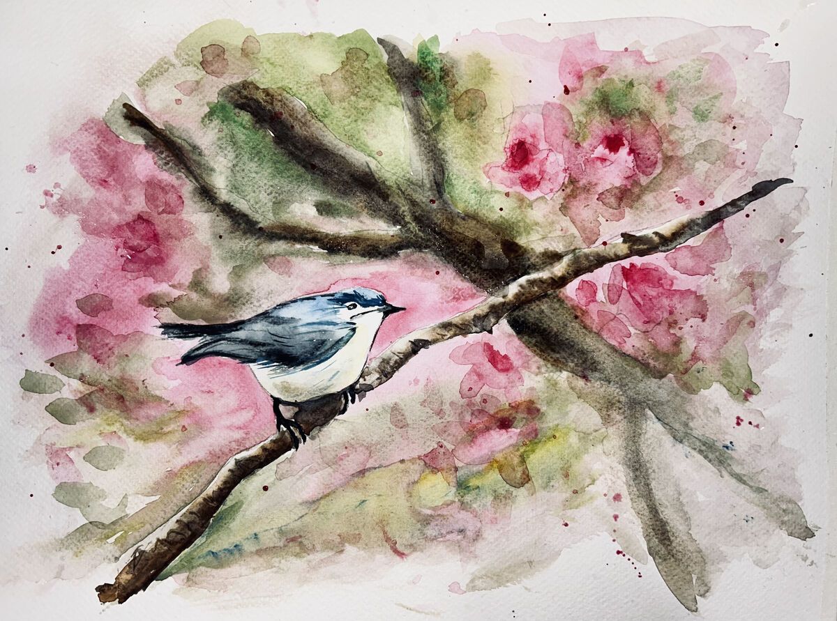 Abstract magenta flowers of thistle. Watercolour. Framed.