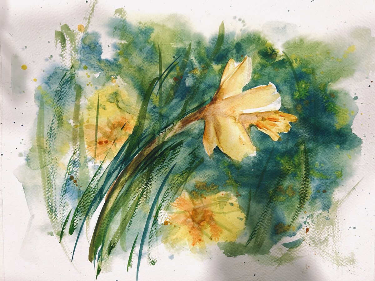 Quick abstract daffodils in watercolours. Framed.