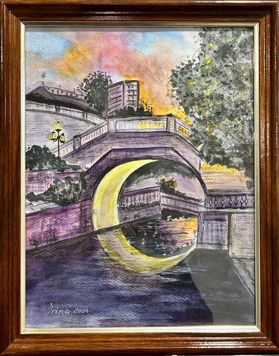 The high arch and its reflection form a circle, symbolizing the Moon. By forming a reflected full circle, the bridge also symbolizes purity. Framed. Photo from internet (unknown author).