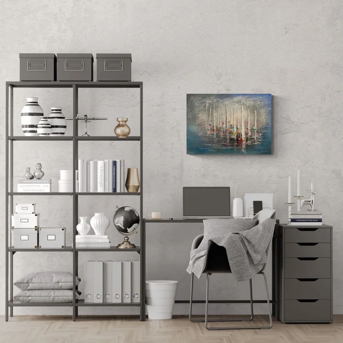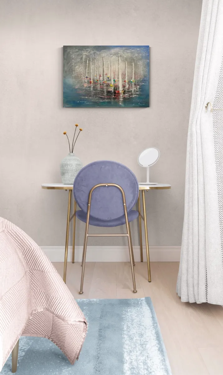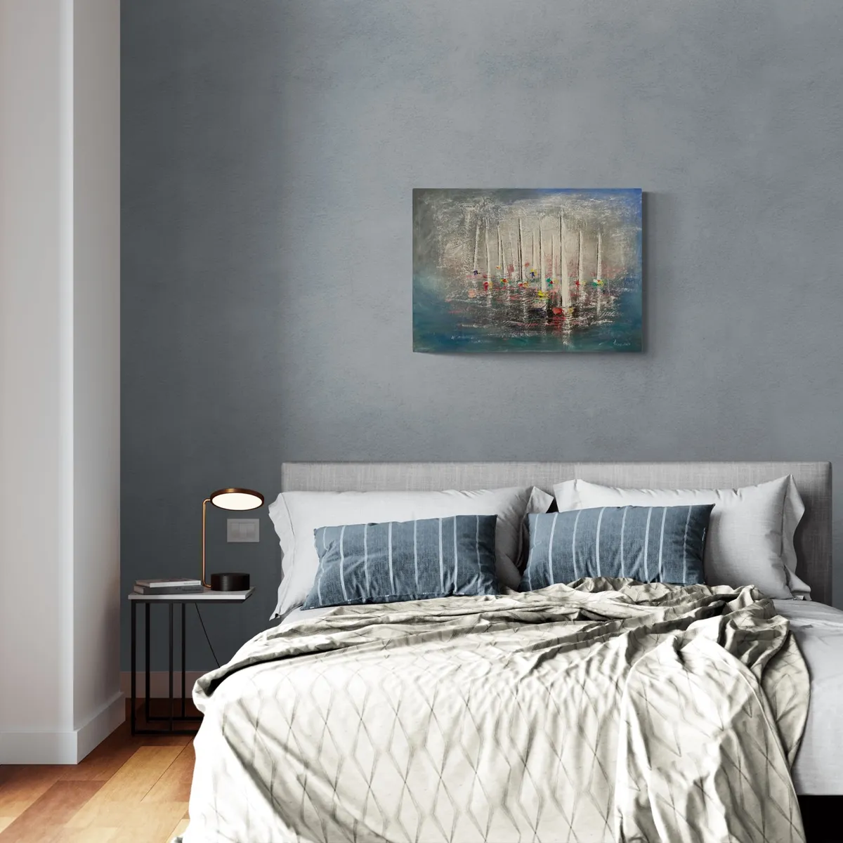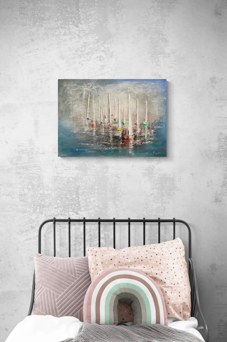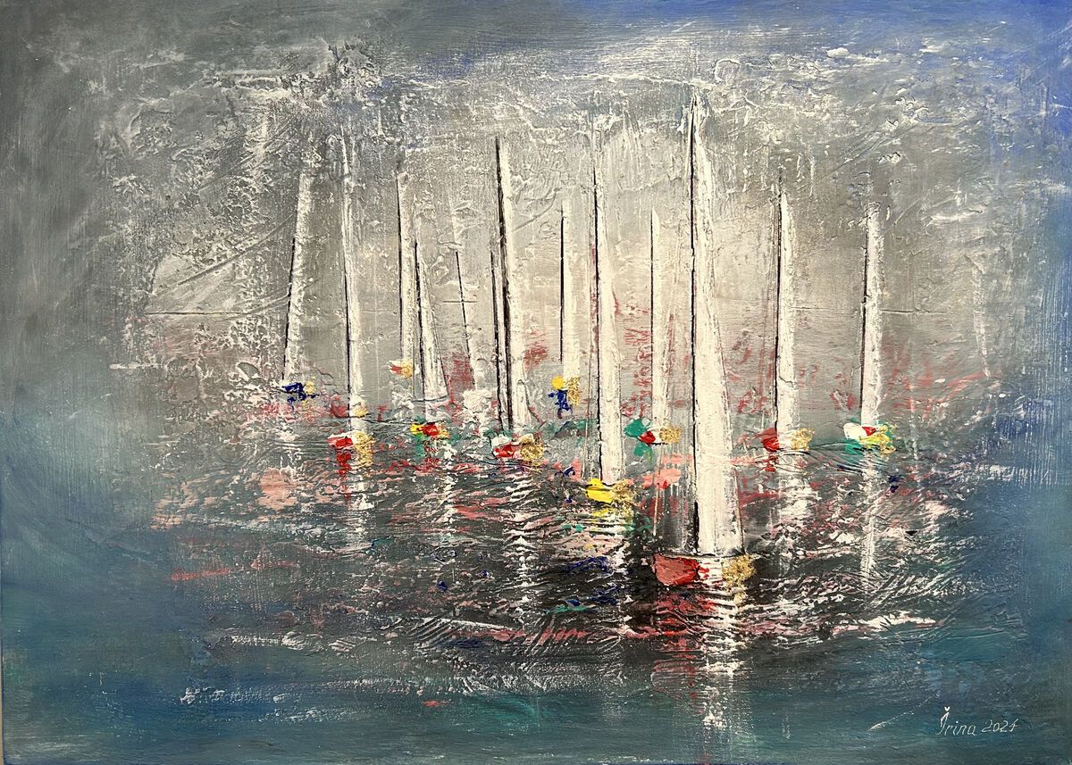 The Yachts are ready to sail. Textured mixed media art on canvas.