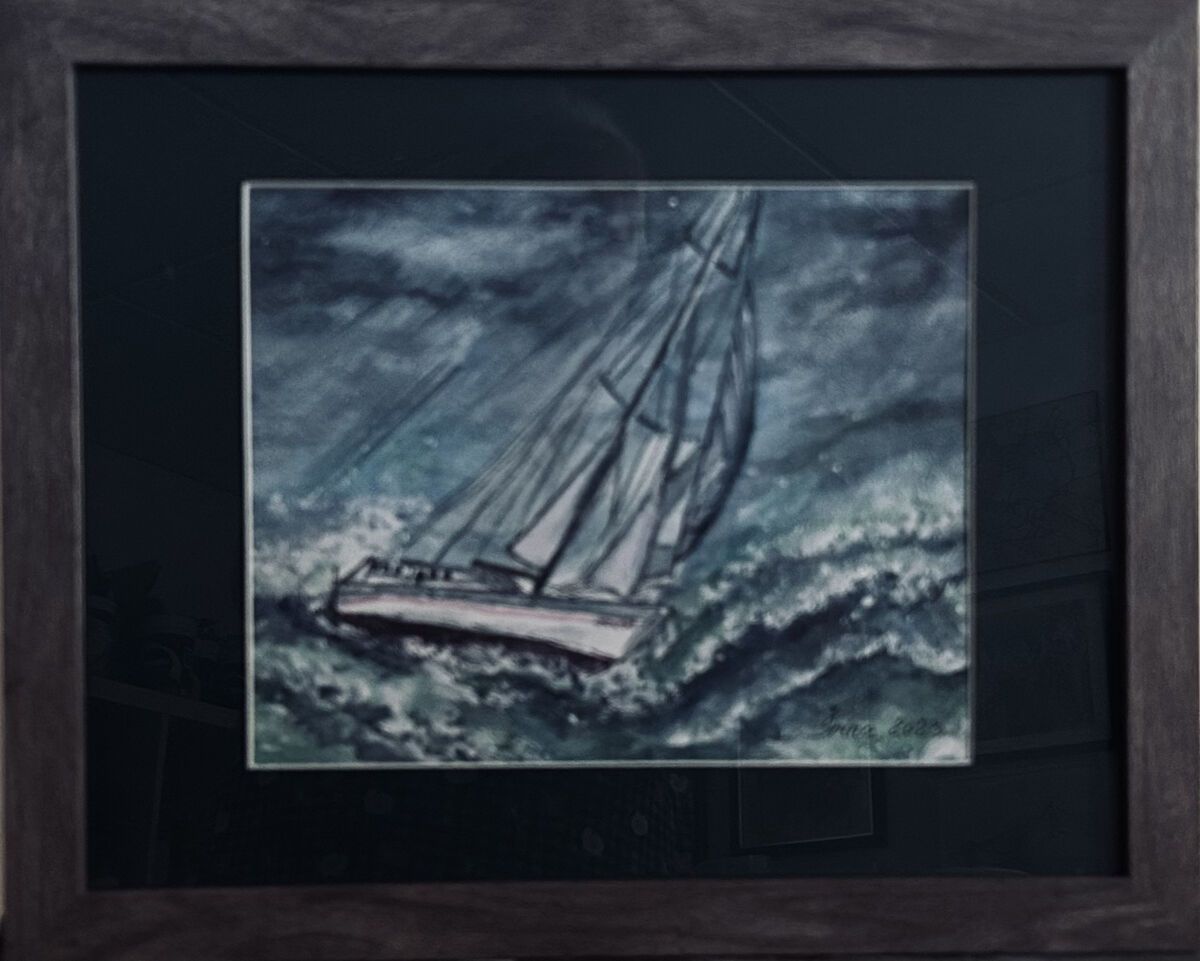My first try of the oil pastels on a black paper. Framed. Inspired by the Forest of Harry Potter novels.