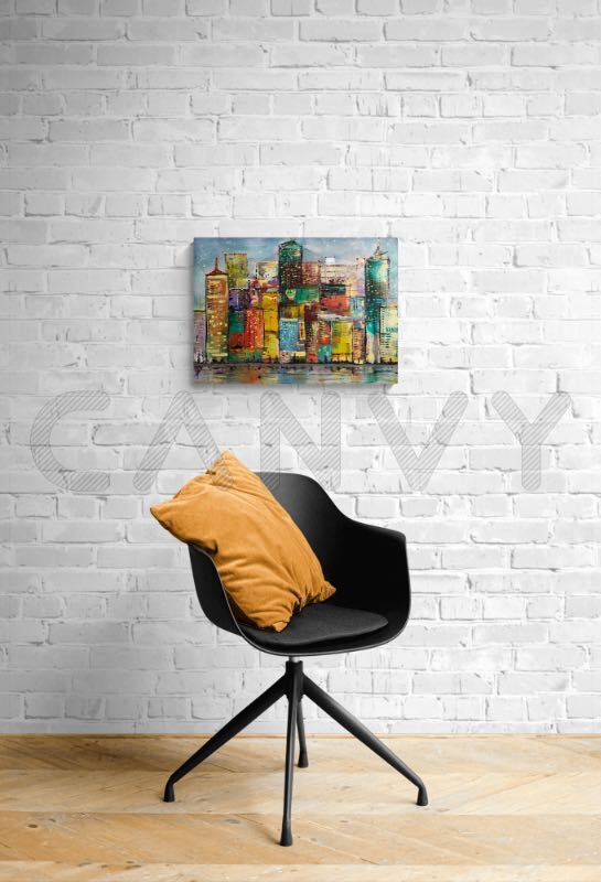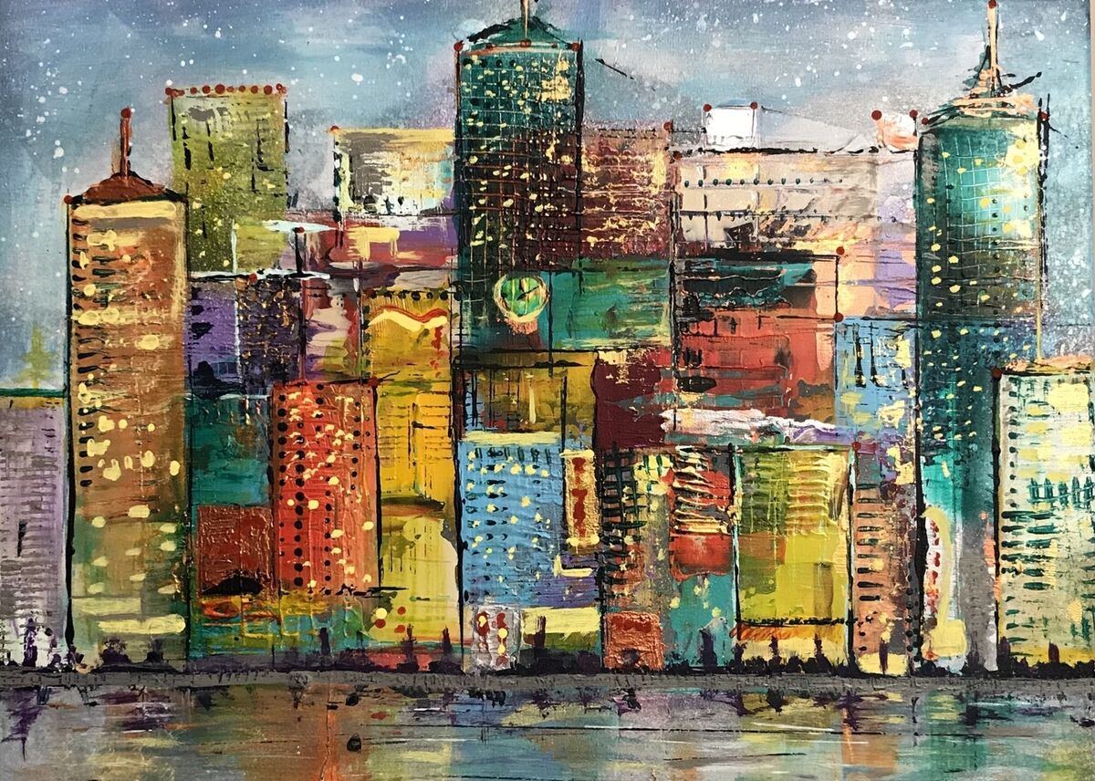 Colourful and cheerful painting of a City inspired by St.John's NL