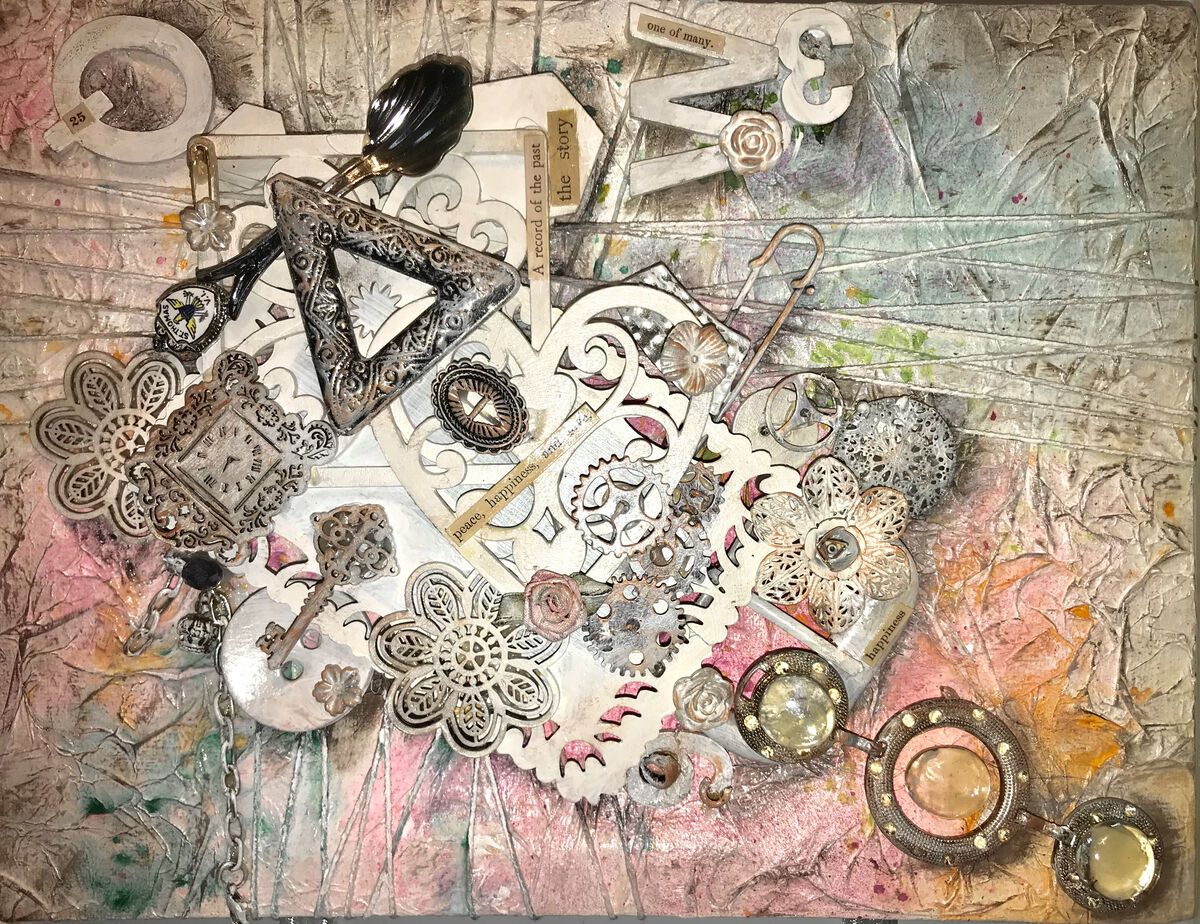 3D Assemblage & Collage on Small Canvases. Triptych.